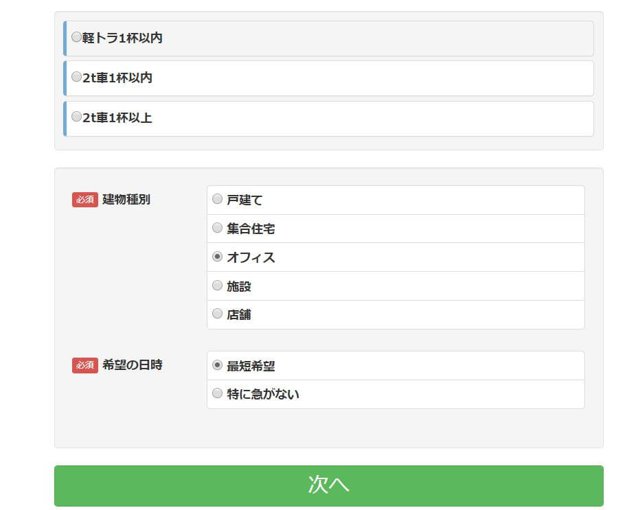 引越しマスタ-では、スムーズに申込みができるように大きく分けて3つの大項目として分けています。